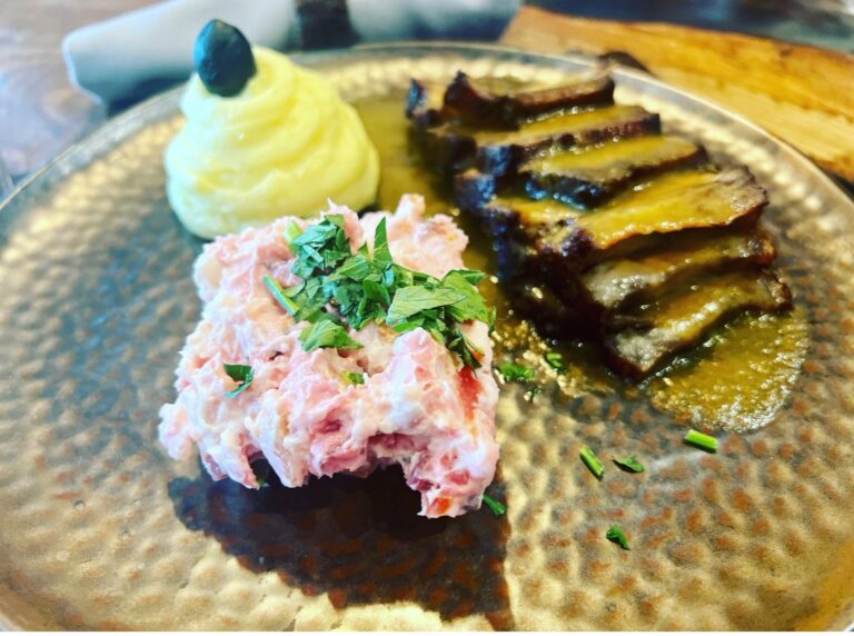 Argentinisches Roastbeef, ca. 150g mit Spiegelei und hausgemachten Pommes Frites